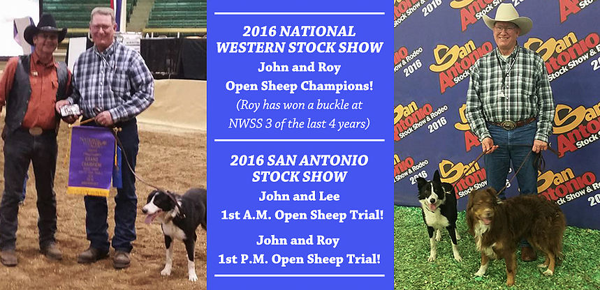 In open competitions John has had 11 wins at the Iowa State Fair, 8 wins at the Nebraska State Fair and a record 11 wins at the National Western Stock Show. In 2003 John began competing in the USBCHA National Cattle Dog Finals and has consistantly made the top ten with dogs like Moo, Trim, Mick, Roy, and Lee who is the 2014 USBCHA National Champion Cattle Dog! In AKC competition, John has won over 80 HITs and RHITs with his dogs. He has also campaigned dogs to 7 Open and 4 Pro-Novice High Point Dog of the Year awards with the Nebraska Stock Dog Association.